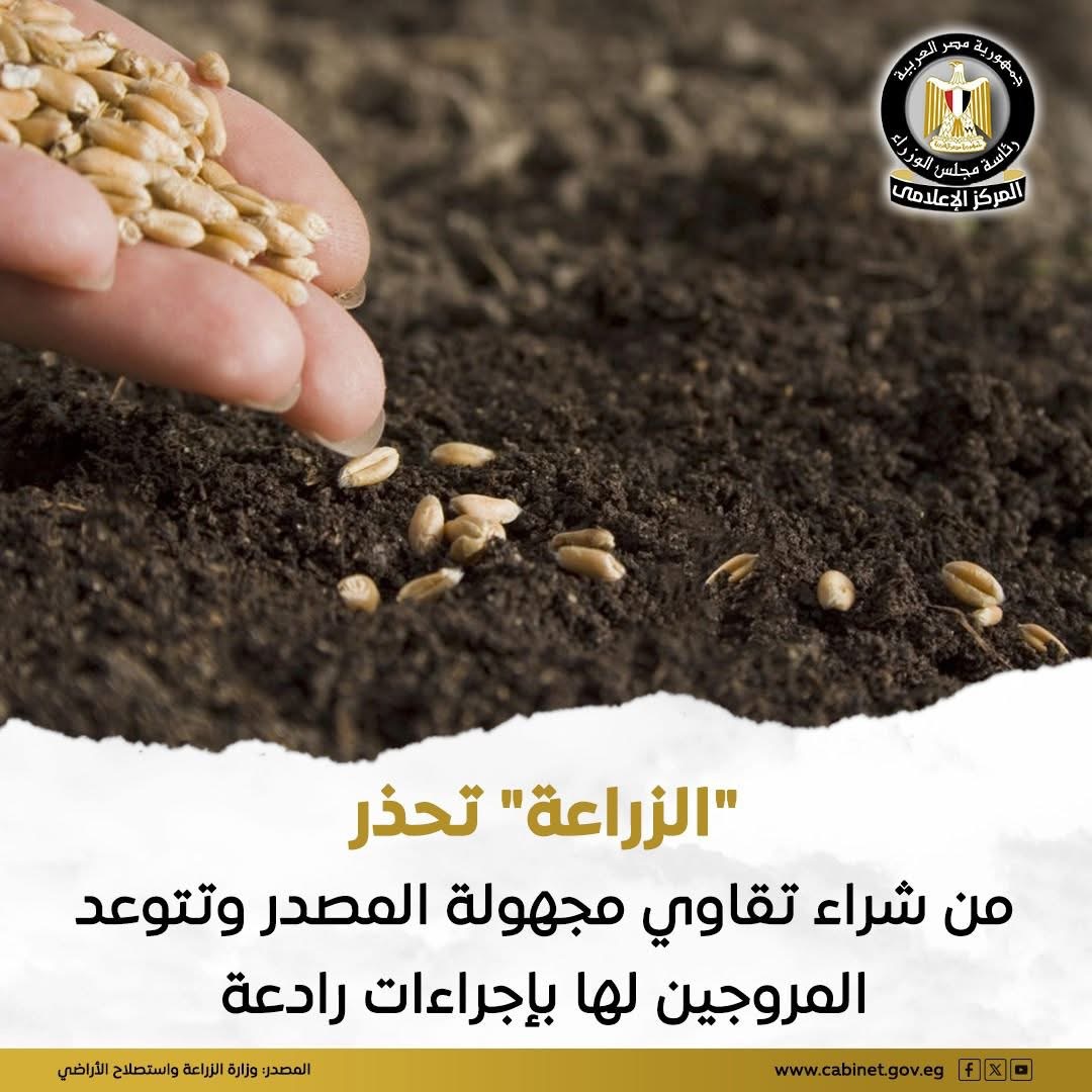 حذرت وزارة الزراعة واستصلاح الأراضي من انتشار إعلانات ممولة عبر مواقع التواصل الاجتماعي تروج لما يُسمى بـ”أفضل التقاوي العالمية”، مؤكدة أنها لا تمت للوزارة بصلة وتمثل محاولات احتيال من جهات غير معتمدة، تروج لأصناف غير مسجلة ومجهولة المصدر مثل “أرز سوبر 600” أو “قمح 999” وغيرها من المسميات المضللة.