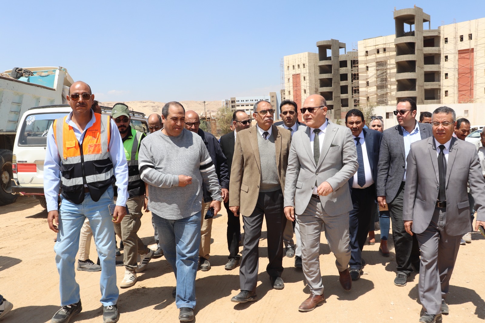 و تفقد الوفد مشروع استكمال البنية التحتية بالجامعة الجديدة في الجزء الغربي داخل الحرم الجامعي الجديد، الذي يضم مشاريع إنشائية كمبني كلية طب الأسنان ومستشفاها و الصالة الأولمبية ومنطقة المدينة الرياضية، وعدد من المباني المتلاحقة التي سيتم تنفيذها، ويتكون المشروع من شبكات المياه بإجمالي طول ٤١٥٤ متر طولي وشبكات الصرف الصحي بإجمالي طول ٤٤٣٣ متر، الي جانب الأعمال الكهربائية بإجمالي طول الكابلات ٢٠٤٨٠ متر طولي واعمال شبكات الري باجمالي اطوال ٩٥٠٠متر طولي، اعمال الطرق توريد و فرش طبقة اساس للطريق الدائرى و الأوسطى بطول ٤٥٠٠ م شبكه مقاومة الحريق (HDPE) باجمالي اطوال ١٣٢٥٠ متر طولي وعدد ١٨٩ حنفيه حريق.