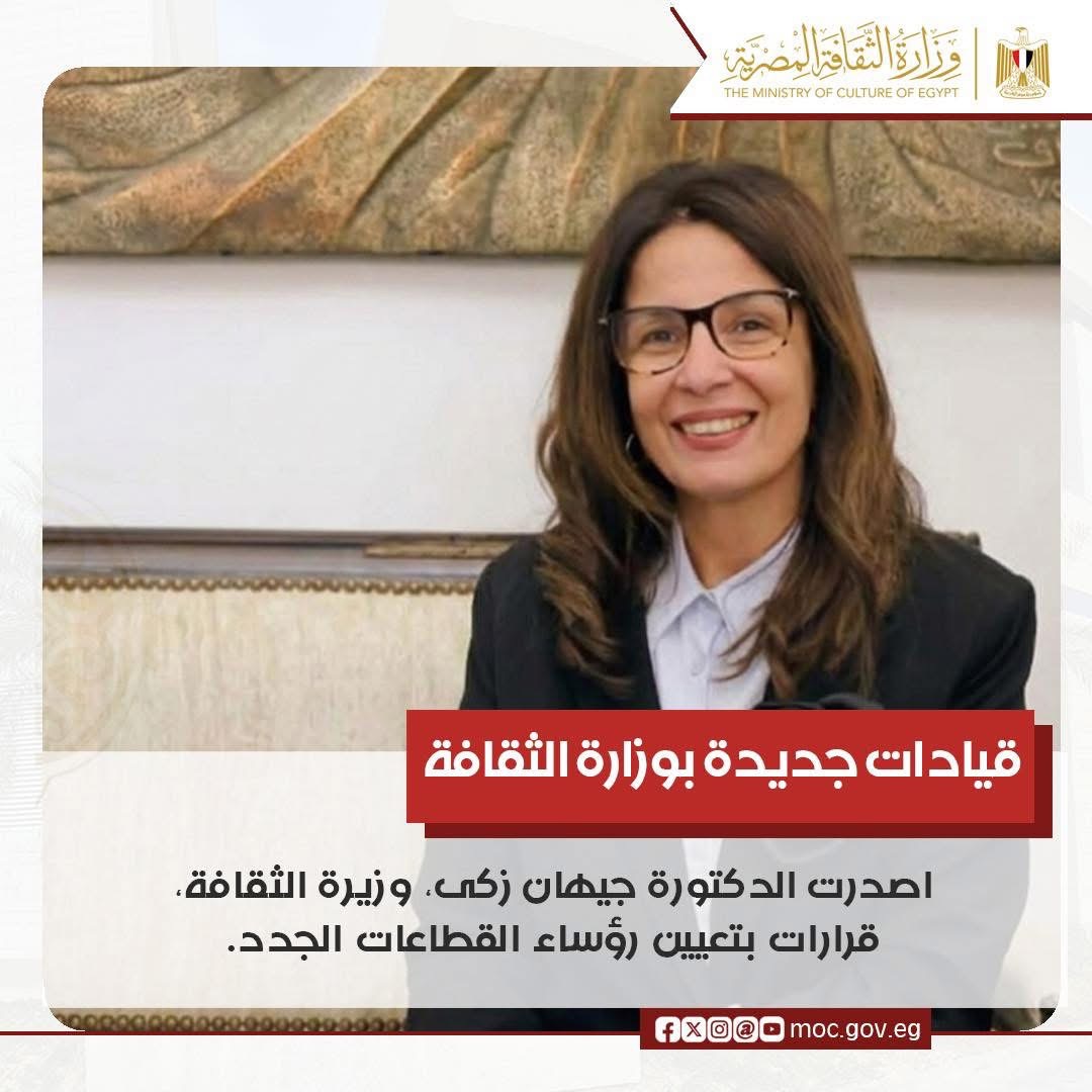 أصدرت الدكتورة جيهان زكي، وزيرة الثقافة، قرارًا بحركة تعيينات جديدة شملت عددًا من رؤساء القطاعات والهيئات التابعة للوزارة، في إطار خطة تطوير الأداء المؤسسي وتعزيز كفاءة العمل خلال المرحلة المقبلة.